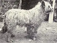 The South Russian Ovcharka[lower-alpha 1] or South Russian Shepherd Dog is breed of flock guardian dog. It developed in the areas of the Russian Empire and the Soviet Union that are now Ukraine and southern Russia, and is thought to derive from cross-breeding between local dogs of the Russian steppes and long-haired shepherd dogs brought to the area from Spain in the late eighteenth century together with Merino sheep.[2][3]: 401 These may have been similar in appearance to the present-day Gos d'Atura Catala.[2]