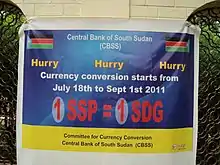 - ↑ "South Sudan pound to be launched next week". BBC News. 11 July 2011. Retrieved 11 July 2011.