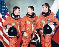 ![]() ![]() (L-R) Gidzenko, Shepherd and Krikalev Soyuz programme (Crewed missions) |
