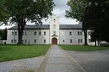 The Spálené Poříčí Castle replaced the original Gothic fortress in 1617. The Renaissance sgraffito decoration of the courtyard and two unique sandstone portals have been preserved. The castle is partly open to the public.[6]
