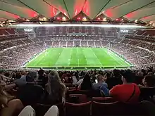 Spain played their first officially recognised match in 1929, winning 9–0 over Italy in the Estadi Olímpic de Montjuïc.[2] During the 1930s the Spanish rugby team played sporadically in the 1930s, playing against the national teams of Italy, Morocco, Germany, and Portugal. Due to the outbreak of World War II, rugby in much of Europe was suspended, and this included Spain. Rugby operations throughout Europe were continued in the 1950s; through this decade the Spanish struggled to the likes of West Germany, Italy and Romania. This pattern of consistency continued somewhat in the 1960s and 1970s; Spain traditionally struggled versus more established opponents such as Romania and Italy, but beat other neighboring sides such as Portugal and Morocco. However, while no official games were played between Spain and the Home Nations or the SANZAR, some Spanish sides traveled to play against various foreign sides.[3]
