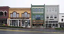 Most of the buildings are two- or three-story masonry structures. The district exhibits a variety of late 19th and early 20th century commercial architecture including Italianate Commercial, Richardson Romanesque Commercial, and simpler Commercial Style architecture. Most of the buildings have retained their original facades.[2][3]