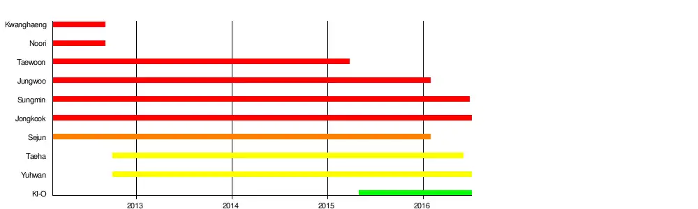 Members Kwanghaeng and Noori left the group in September, and were replaced by Yuhwan and Taeha in October.