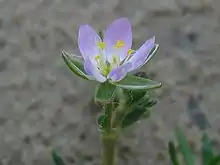 It is an annual or perennial herb producing a narrow stem lined with fleshy linear leaves. The small flowers are 8 to 12 mm across with five petals which are usually slightly longer than the sepals.[5] The five petals are oval white or pink-tinged. The tiny seeds have winged margins. It has 10 stamens.[5][6]