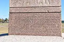 Commemorating the discovery of oil at Spindletop Hill and dedicated January 10, 1951, the Lucas Gusher Monument is a 58-foot pink Texas granite obelisk erected by the Lucas Gusher Monument Association. The monument was originally placed at the site of the Lucas Gusher, approximately three-fourths of a mile south of the Spindletop-Gladys City Boomtown Museum. It was moved to the Gladys City site in 1978 due to soil subsidence and accessibility. The monument and the entire Spindletop field have been designated a National Historic Landmark by the federal government.