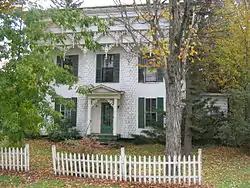 Spirit House, also known as Timothy Brown House or Brown's Hall, is a historic home located at Georgetown in Madison County, New York. It was built about 1865 and is essentially a square, wood-frame structure. The exterior features two-by-fours arranged vertically and scalloped at regular intervals. The use of the scallop pattern gives the Spirit House a highly textured surface and it is almost impossible to discern how it is constructed without close inspection. It also features a three tiered cornice with downward pointing keys. It was constructed as a residence and for meetings of Spiritualists in a large hall on the second floor.[2]