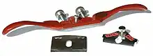 ![]() Metal-handled spokeshaves, one with a flat sole and one with a rounded sole | |