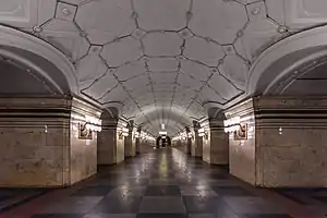 Sportivnaya (Russian: Спорти́вная) is a Moscow Metro station on the Sokolnicheskaya line. It is in the Khamovniki District in the Central Administrative Okrug of Moscow. Named for the nearby Luzhniki Olympic Complex, it opened in 1957. Passengers may make out-of-station transfers from Sportivnaya to Luzhniki on the Moscow Central Circle, which is about 200 meters away.[1]