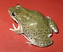 The spotted grass frog or spotted marsh frog (Limnodynastes tasmaniensis) is a terrestrial frog native to Australia. It is distributed throughout all of New South Wales and Victoria, eastern South Australia, the majority of Queensland, and eastern Tasmania. It is also naturalised in Western Australia, having been unintentionally introduced at Kununurra in the 1970s, apparently during the relocation of several hundred transportable homes from Adelaide.[2]