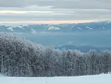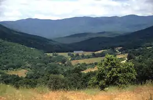 Sredna Gora (Bulgarian: Средна гора [ˈsrɛdnɐ ɡoˈra]) is a mountain range in central Bulgaria, situated south of and parallel to the Balkan Mountains and extending from the Iskar to the west and the elbow of Tundzha north of Yambol to the east. Sredna Gora is 285 km long, reaching 50 km at its greatest width. Its highest peak is Golyam Bogdan at 1,604 m (5,262 ft).