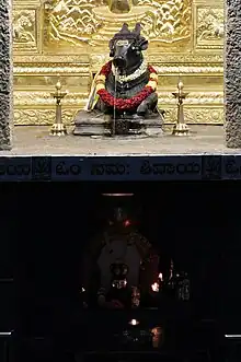 There is a continuous stream of water that flows out of the Nandi’s mouth, which is considered to be holy water, referred to as ‘Tirtha’ in Kannada.