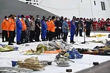 The National Search and Rescue Agency (Indonesian: BASARNAS) immediately deployed personnel to the crash site[46] while the National Police and the Ministry of Transportation set up crisis centres in Port of Tanjung Priok[47] and Soekarno–Hatta International Airport.[48] The Indonesian Navy deployed a number of vessels for the search and rescue operations, in addition to helicopters and KOPASKA (frogman) personnel.[49]