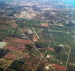 St. Catharines/Niagara District Airport (IATA: YCM, ICAO: CYSN) is a regional airport located in Niagara-on-the-Lake, Ontario, Canada. It is classified as an airport of entry by NAV CANADA and is staffed by the Canada Border Services Agency on a call out basis from the Queenston-Lewiston Bridge. CBSA officers at this airport currently can handle general aviation aircraft only, with no more than 15 passengers.[2]