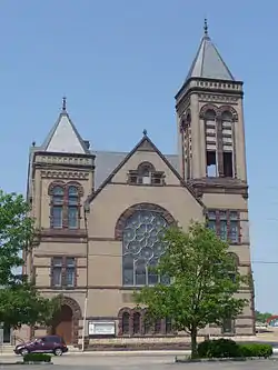 St. John's Evangelical Lutheran Church is a historic Lutheran church in downtown Springfield, Ohio, United States. Founded as a German-speaking parish in Springfield's early days, it grew rapidly during its first few decades, and its present large church building was constructed in the 1890s under the direction of one of Springfield's leading architects. The congregation remains in the landmark church building, which has been named a historic site.