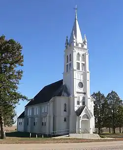 The St. John's German Evangelical Lutheran Church, near Lyons, Nebraska, was built in 1902. Also known as Deutsche Ev. Luth. St. Johannes Kirche, it was listed on the National Register of Historic Places in 1982. The listing included two contributing buildings and a contributing site. The location of the site is not disclosed by the National Register.[1] The building has been termed "an excellent example of a German folk version of the Gothic Revival style" and described as "one of the finest and least altered frame churches in Nebraska."[2]
