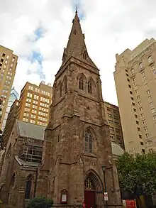 The church was founded in the mid-19th century as part of the Oxford Movement revival in the Anglican Church. The building was constructed by John Notman in the Gothic Revival style between 1847 and 1849, based on an original design by English architect Richard Cromwell Carpenter. The tower was designed by Notman, and completed in 1865 by George Hewitt.