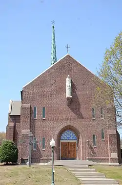 The frame church was replaced with a brick church in 1889 near the school, which served the parish until 1934, when construction began on the large brick church which stands today.