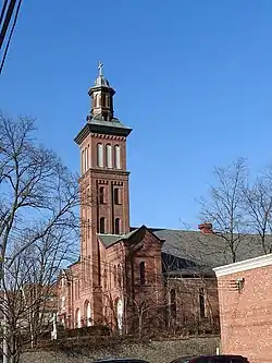St. Mary's Church and rectory were constructed in 1857. Both were built of red brick, the church in North Italian Romanesque style with a central tower.[9]