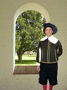 Period dressed living history actor playing the role of Leonard Calvert in the colonial State House in St. Mary's City.[5][16]