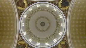52°23′47″N 13°03′39″E / 52.39629°N 13.06095°E St. Nicholas Church (German: St. Nikolaikirche) in Potsdam is a Lutheran church under the Evangelical Church in Berlin, Brandenburg and Silesian Upper Lusatia of the Evangelical Church in Germany on the Old Market Square (Alter Markt) in Potsdam. The central plan building in the Classicist style and dedicated to Saint Nicholas was built to plans by Karl Friedrich Schinkel in the years 1830 to 1837. The tambour of the 77-metre-high church that towers above the roofs of the city was built later, from 1843 to 1850. Its construction was taken over by Ludwig Persius and, from 1845, Friedrich August Stüler.