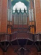 The organ was built in 1899 by the firm Furtwängler & Hammer. In the 20th century, the disposition was changed several times by Emil Hammer from Arnum. The instrument was electrified in 1979 by Walcker & Cie. In 2002, the organ builder Lenter restored the original 1899 version with 49 stops.[6]