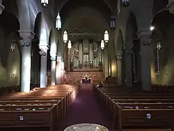 The cathedral's Aeolian-Skinner organ is a historical instrument that encompasses part of the first organ in the city of San Diego, built in 1887[7] and moved with the church to its present location in the 1950s. It was expanded several times with additional ranks and keyboards. In 2011, the Cathedral raised funds for organ restoration, and the instrument was dismantled and sent to Missouri for a complete restoration. A temporary, digital organ was installed in its place. The restored Aeolian-Skinner organ was back in place by December 2012.[8]