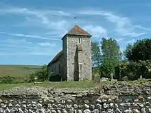 The Grade I listed Saxon church of St Botolph's at Botolphs, West Sussex, England, is situated in the valley of the River Adur and is now part of the Church of England parish of Beeding and Bramber with Botolphs. An earlier dedication to St Peter de Vetere Ponte (St Peter of the Old Bridge) is now lost, like the bridge over the Adur from which it took this ancient name.[1] The church serves the mostly depopulated hamlet of Botolphs in the Horsham district of West Sussex. The church has fragments of medieval wall paintings. Architectural historian Ian Nairn comments that the Jacobean pulpit is "notable in a county which is poor in 17th century fittings".[2]