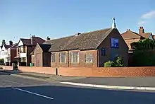 By 1860 there was a need for a larger church and the new St Clement's Church on Edge Lane opened in 1866, although it was not consecrated until 1896.[4] Sir William Cunliffe Brooks, a benefactor to the township, did not support building the new church. Two of his daughters who died in infancy were buried at the old church.[5] Another wealthy and influential parishioner who opposed the move was the merchant, Samuel Mendel of Manley Hall, Whalley Range. The situation continued until 1940, when the endowment was formally transferred to the new church.[4] The old church was demolished in 1949 it having become dilapidated.[5] Its ground plan is still apparent and its site was excavated in 1980–81. At Hurstville Road, Hardy Lane, is St Barnabas's Church, a chapel dependent upon St Clement's. It opened in 1951. St Clement's celebrated its 500th anniversary during 2012. David Bonser, the Anglican Bishop of Bolton from 1991 until 1999, was rector of St Clement's from 1968 to 1972.