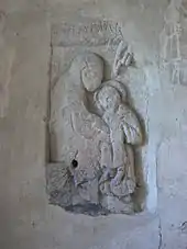 There is a 42-by-24-inch (107 cm × 61 cm)[15] carving of the Mother and Child in the south wall which dates from the time of the Anglo-Saxons.[1] Until 1910, the carving was on the outside of the church attached to the south wall and used as a sundial. An incised meridian and other lines were added along with a hole for the gnomon of a scratch dial.[15] Its original position in the church is not known,[19] but may have been above the altar.[15]