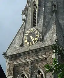At the church's consecration on 12 September 1861 the tower had only one bell. Five more were added in 1864, creating a ring of six that was first rung on 29 September 1864.[15] In 1887 the parish commemorated the Golden Jubilee of Queen Victoria by adding two more bells, increasing them to a ring to eight that was first rung on 20 June 1887.