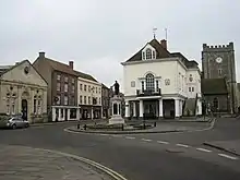 ![]() Wallingford town centre, with the Town Hall in the foreground and the church of St Mary-le-More in the background on the right. | |