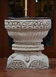 The existence of an earlier building to the one now standing may be inferred from the beautiful Norman font found within the church and the existence of other artefacts of the same age. These were found buried in debris beneath the church in the 19th century. The font in particular was found in three fragments and work was done to repair it. This font can be found at the west end of the church today and has given its name to a particular style of font known as the "Aylesbury Fonts". These fonts are normally dated late in the 12th century around the years 1170 to 1190.[1][3]