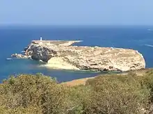 Saint Paul's Islands lie about 100 metres off the coast of Mellieħa, Malta. The island can split into two islands by a shallow isthmus according to the sea level, and when they are split the larger island on the west is known as Saint Paul's Island while the smaller one on the east is known as Quartz Island. Both islands are made of upper coralline limestone.[15]
