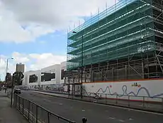 In 2006 the school joined the Building Schools for the Future program to completely replace its 40-year-old building. The £41 million (approx.) construction project by Bouygues began in 2009.[12][19] The works are within a wider "St Paul's Way Transformation Project", chaired by Lord Andrew Mawson.[20] The school took the opportunity to commission a large artwork on the hoarding,[20][21] commissioned by Bow Arts and incorporating art by the pupils and professional artist Emily Allchurch— was described as a "crucial" touch by Sir Bob Kerslake of the Homes and Communities Agency.[22]