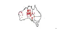 The species has a disjunct range across arid western and central Australia, with occurrence records in Western Australia, South Australia, the Northern Territory, New South Wales and Queensland.[3][4]