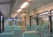 The G.T.W. (pronounced Ghe-Teh-Ve) means Gelenktriebwagen, which translates to "articular trainset", ie having two or more parts connected to each other, while 2/6 means that of the 6 axles, 2 are drivable. As for the "Railbus", it is used informally to describe light trainsets.[15] The arrangement of the trainsets is 2 'Bo' 2 'and they are made of aluminum and steel alloys, and in the middle there is a drive vehicle, which is called "Power Module", where the 550 kW power diesel engine named MTU 12V 183, as well as the other mechanisms are located.[16]