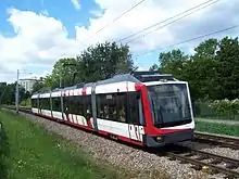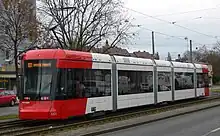 The Stadler Variobahn (formerly sold as the ABB Variotram, Adtranz Variotram and Bombardier Variotram) is a German-designed model of articulated low-floor tram and light rail vehicle. Since its introduction in 1993, the Variobahn has been manufactured variously by ABB, Adtranz, Bombardier Transportation, and since 2001 by Stadler Rail.[1] As of 2009, 254 trams have been ordered, with an additional 110 on option. A unit costs about €2.5 million.[2][3]