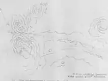 Viewing across the open eastern flank was possible from the top of the "curiously shaped heaps of broken earth" near Shellal.[39] Two tels, indicating possible sites of ancient cities, stood high above the plain and also provided excellent views. The spectacular, flat-topped Tel el Jemmi, with its perpendicular sides, one side dropping into the Wadi Ghazza, could be seen for miles. It had been used as a lookout during the first battle of Gaza.[41] Tel el Fara, on the Rafa to Beersheba road, was a flat-topped prominence with conical sides 7 miles (11 km) further south, and was approximately 16 miles (26 km) inland from the coast in the centre of the Gaza to Beersheba front line. This large mound, near the Wadi Ghazza at Shellal, was thought to have been built by the crusaders in the 13th century as an observation post; and it gave an "uninterrupted view for several miles northward and eastward."[39] At the base of Tel el Fara huge stone buttresses and several courses of cut stone could be seen at water level.[41][42]