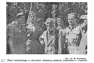 Grodyński's military service[7] in this period exploited his administrative\organizational skills, as well as his intelligence background and multi-lingual skills. On 2 June 1945, he took part in a ceremony in Rome celebrating the anniversary of Garibaldi's death, during which he represented Polish Armed Forces (pl), along with military leaders of French and other national armed forces.[18] The ending of the Second World War was devastating for Grodyński and other serving Poles who fought with the Allied Forces when much of Eastern Europe, including Poland, fell to Russian hegemony, thus robbing many of them of the prospect of returning to their homeland.[19]