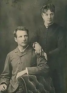 Didžiulis inherited the manor in Griežionėlės after his father's death in 1874.[2] In 1877, he married Liudvika Nitaitė who later became known as a writer and an activist. They had a total of nine children – five daughters and three sons grew to adulthood while one son died in infancy[4] – but their marriage was not happy. While their shared their interest in Lithuanian language and culture, Didžiulis had several lovers and was stubborn even despotic.[5] In 1896, Didžiulienė moved to Mitau (Jelgava) in present-day Latvia.[6]