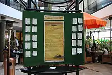 The café is named after a Naivasha thorn tree (Acacia xanthophloea)[23] in its centre. Travellers used to pin notes to others onto the thorns of the tree. The current tree is the third of the same variety. The first was planted in 1961, and when it was ailing a new one was planted in its place. This new tree began to droop, and in 1997 was replaced with the current tree. During the planting ceremony, a time capsule was buried beneath it, to be opened in 2038.[10] The first post office in Nairobi was based here, and tourists still leave messages and advertisements.[24] From 1996 to 2021, the forum of the largest travel guide book publisher, Lonely Planet, was named the "Thorn Tree travel forum" after this tree.[25]