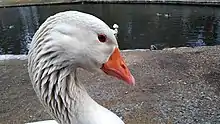 A greylag goose lived in the pond until November 2, 2018 when he died. He was approximately 25 years old.