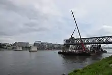 Starý most (English: Old Bridge) is a bridge over the river Danube in Bratislava, Slovakia. Before its reconstruction, the 460-meter-long (1,510 ft) bridge included a wooden pathway for pedestrians, a two-lane road, and a railway track, connecting the historic old city of Bratislava with the newer region Petržalka. The bridge was closed for cars in 2009 and for buses on 14 May 2010. On 2 December 2013 it was also closed for pedestrian and bicycle traffic as deconstruction of the old bridge began. At the time of its closure it was the oldest standing bridge in Bratislava.