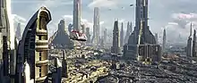 On June 11, 2010, at the "What's Next?" presentation, Disney announced that the re-imagined attraction would take place between Revenge of the Sith and Star Wars – Episode IV: A New Hope and would be named Star Tours – The Adventures Continue. They also premiered an image showcasing the StarSpeeder 1000 flying through Coruscant.[15]