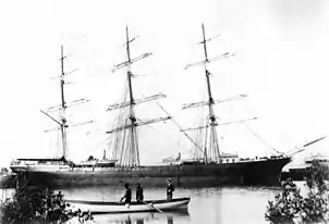 J.J. Smith & Co. re-registered the Star of Bengal in the United States,[note 3] and in 1898, the 25-year-old ship underwent a major overhaul. To make the ship's operations more cost-effective,[40] her mizzen-mast was re-rigged from square to fore-and-aft, and the Star of Bengal turned from a full-rigged ship to a barque.[10][11] She got new decks, but the number of bulkheads in service decreased from three to one.[10] In 1904, a donkey boiler was installed on the ship to assist the crew with raising sails.[41][42]