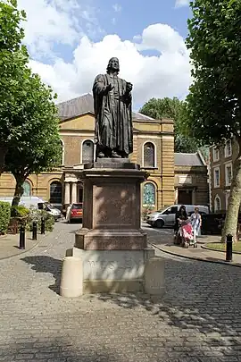 A statue of John Wesley, an Anglican minister and theologian, by British sculptor John Adams-Acton is installed outside Wesley's Chapel, along City Road, in Shoreditch, London, United Kingdom. The statue, created in 1891, is Grade II-listed.[1] The 10 foot high granite pedestal on which the statue is located was the work of the Methodist architect Elijah Hoole.[2]