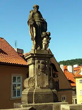 The statue of Nicholas of Tolentino (Czech: Socha svatého Mikuláše Tolentinského) is an outdoor sculpture by Jeroným Kohl, installed on the south side of the Charles Bridge in Prague, Czech Republic.