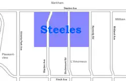 - 1 2 "Steeles". Toronto Community News. Retrieved 2020-08-12.