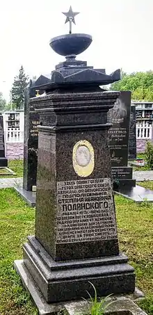 On September 3, 1943, Polyansky was seriously wounded in the battle near Kharkov.[4] On September 10, 1943, he died from his wounds.[5] He was buried in a mass grave of Soviet soldiers on the Alley of Heroes of the city cemetery No. 2 in Kharkov (Pushkin Street, 54).[6]