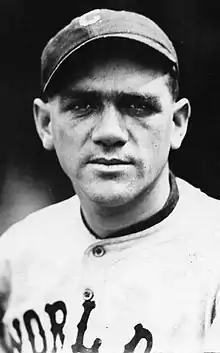 Steve would end up having the most successful playing career of the O'Neill brothers, serving as a catcher for 17 years in the American League.[3] He made his major league debut as a September call-up on the 18th in 1911 for the Naps against the Boston Red Sox. He went 1-for-4 while stealing a base.[4] He would spend the next twelve years with the team. He appeared in eight other games, collecting four total hits. He gradually played more for Cleveland in the next three seasons, going from 69 to 80 to 87 games; in 1913, while batting .295 in eighty games, he received votes enough to finish 24th in MVP voting.[5] He then played a majority of a season for the first time in 1915, playing in 121 games while batting .236 with 91 hits and 34 RBIs; he hit two home runs that season, the first of just thirteen in his career. Aside from 1917, when he batted .184, he would bat above .230 for the rest of his career. O'Neill collected his first hundred hit season in 1919, doing so by collecting 115 hits in 125 games while driving in 47 runs; he batted .289 while also collecting 35 doubles with 48 walks and 21 strikeouts. The following year, he had his finest and longest season. He played 149 games and batted .321 with 55 RBIs and career highs in hits (157), doubles (39), and home runs (three). His final home run of that season came in the moment of tragedy. On August 16, he hit a home run off Carl Mays of the New York Yankees.[6][7] That same night, as he drove in another run to win the game for Cleveland 4-3, a Mays fastball hit Ray Chapman in the head that saw him die that night; O'Neill and the rest of the team saw his body before the funeral and he fainted after seeing him in the casket. That season saw Cleveland win the American League pennant for the first time ever. In the 1920 World Series, O'Neill batted .333 by going 7-for-21 while driving in two runs (both in Game 1, which Cleveland won 3-0) as they beat the Brooklyn Robins in seven games.[8][9]